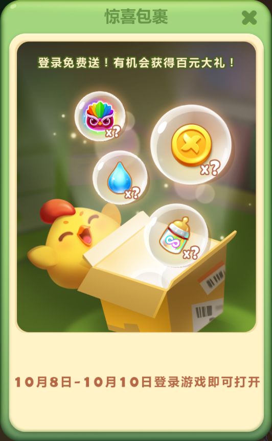 在最后的最后,10月8日-10月10日登录游戏还能开启神秘惊喜礼包,百元大礼等你带回家哦!