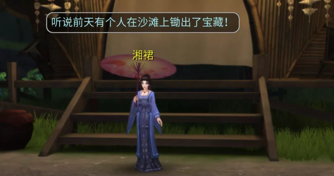在隐仙湾的早晨,撑伞的湘裙会根据固定路线来回循环,期间将停留在不同的地点,小伙伴们需要点击地图观察湘裙的位置!而在夜晚,湘裙则会待在小屋边休息,不会任意走动。