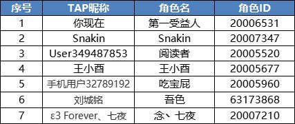 按照以下名单信息将奖励发至游戏内邮箱中,请大家注意查收哦~