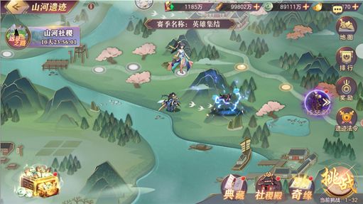 玩法过程中摒弃了原有战力系统,类似地宫和时之狭隙,将大家武将属性、进阶等归零,但保留了武将、神兵、灵宠星级和幻武效果,需要通过内置养成获取社稷值提升战斗能力,整体可以说在玩法上算是一次不错的创新和拓展。