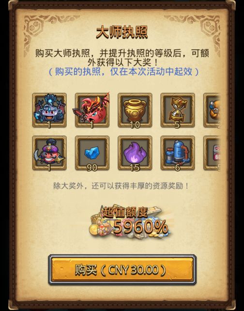 执照升级可获得执照等级奖励有钻石、金罐、头骨、探险积分等,等级越高,奖励越好