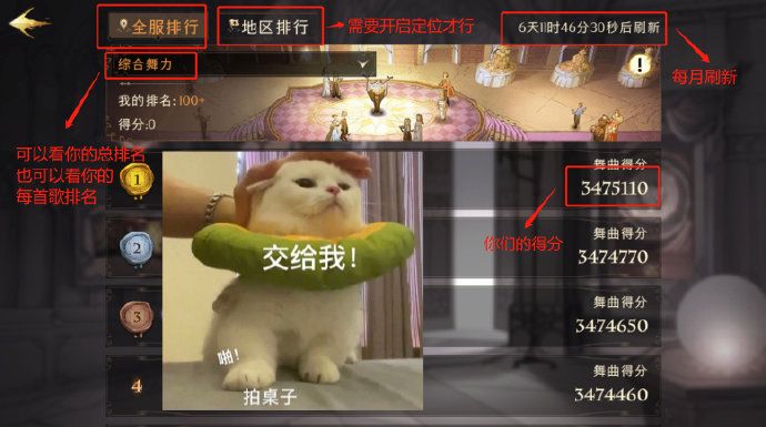 在准备界面可以看到【区域荣誉】,内含舞会总排行和分曲目的排行