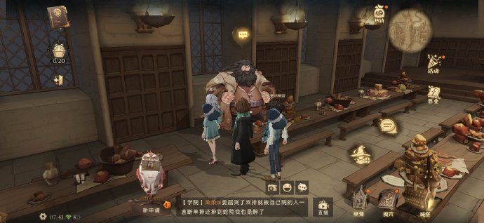 进入【霍格沃茨礼堂】,往左走在两列椅子的中部找到等待的npc【海格】,和他对话后可领取一张画片!