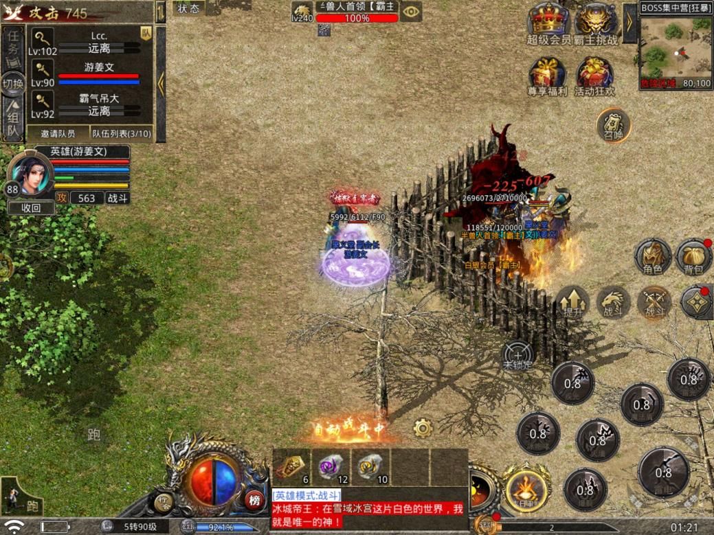 组队打的时候,如果角色跟召唤物足够多,可以用英雄和召唤物把怪卡在角落里。