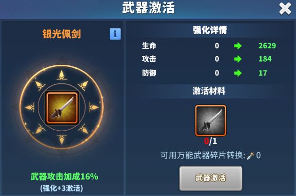 银光佩剑强化至3以后可以激活大幅的攻击加成。