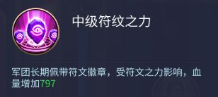 中级符文之力:军团长期佩戴符文徽章,受符文之力影响,血量增加2381