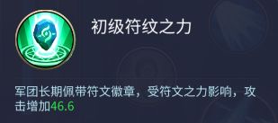 初级符文之力:军团长期佩戴符文徽章,受符文之力影响,攻击增加99.5