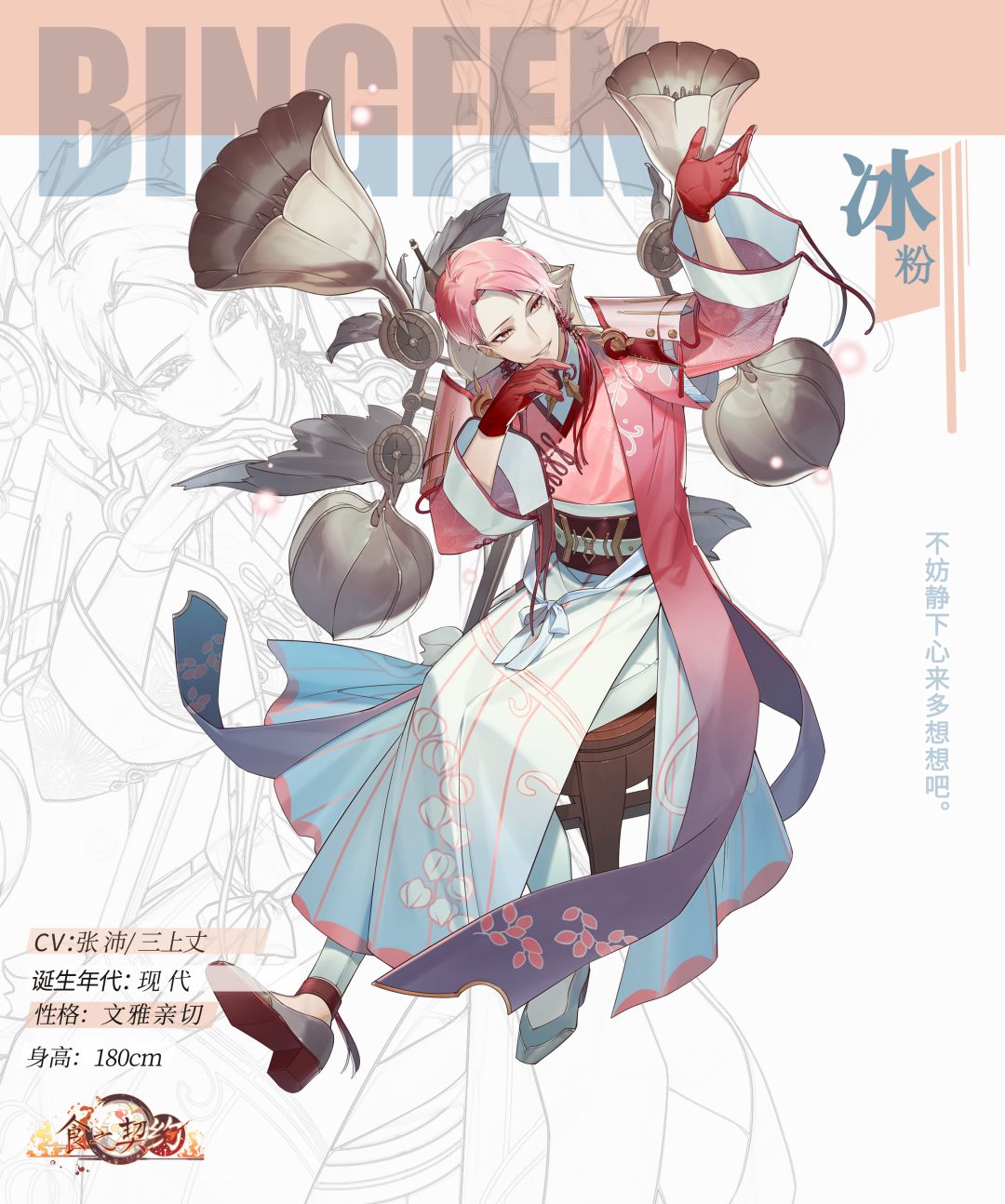 冰粉又被称为凉粉,是一道备受人们喜爱的夏季小吃,口其感冰凉香甜,又可以生津解暑,清凉降火。据传,冰粉始于明清时期,由此飨灵也设计成了一位身着国风服饰,性格温和亲切的先生形象,并且大千生的镇定用途也是来源于此。