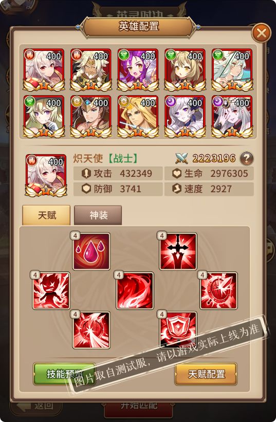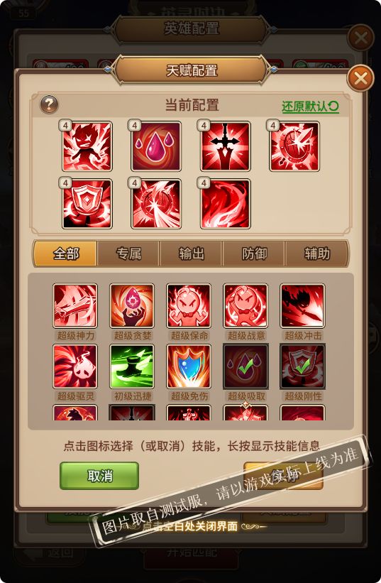 ◆每个英雄可以配置7个天赋技能,玩家可在英雄配置中自由调整更换。