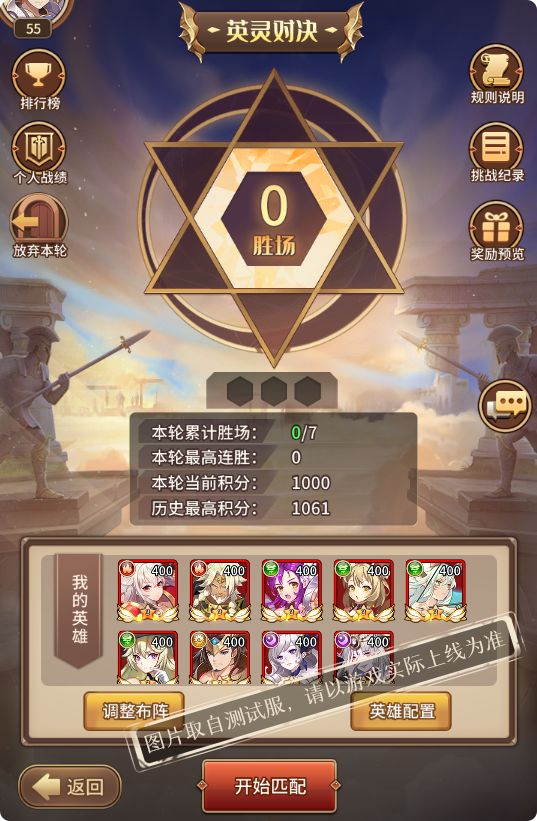 ◆每轮对决中,累计获胜7场或失败3场都将结束本轮挑战,累计获胜7场获得进入阶段2(排行挑战)资格。