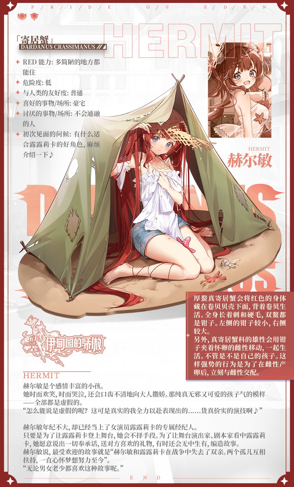某个剧团团长:赫尔敏啊……她是个很可爱的孩子。呜呜,我还记得与她相遇的那天呢。不管天晴还是下雨,她都站在剧场前,眼中含泪,口齿不清地说“露露莉卡姐姐是很厉害的演员!给她一个角色吧!”……我实在是太想帮帮她了,才让露露莉卡上了台。露露莉卡确实是很有实力的。现在,我让她们上台已经和这些背景无关了。