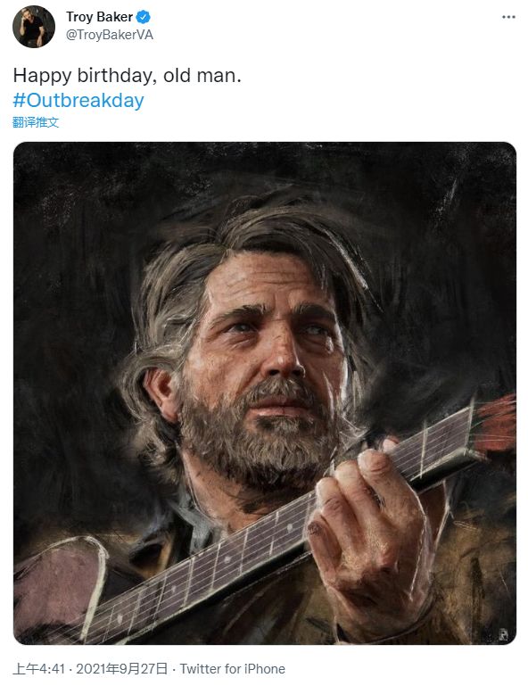 昨天(9月26日)是《最后生还者》世界观中病毒爆发的日子,也是游戏主角乔尔·米勒的生日。乔尔的配音及动捕演员特洛伊·贝克发推为乔尔庆生,粉丝们也纷纷发出贺图,纪念这个角色。