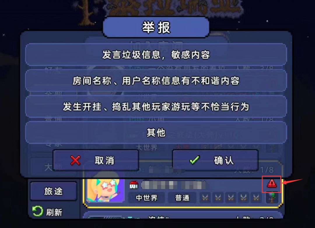 如果在自己的联机房间内遇到了这样的玩家,可以通过房间信息-举报功能来进行举报,我们会收到举报消息,并进行核实和封禁;