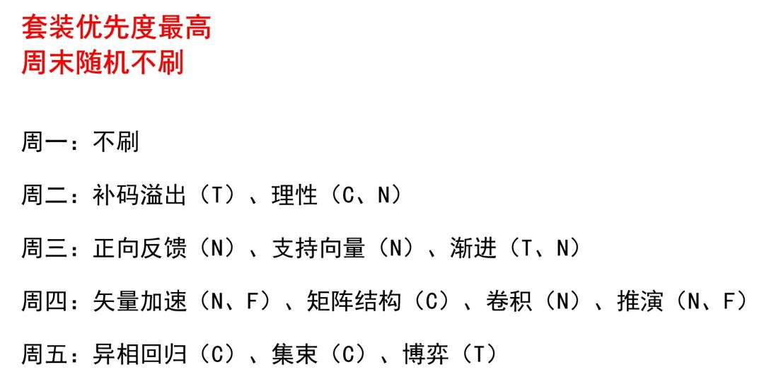 非常感谢“Miku大酱”大佬做的攻略,目前需要刷的只剩下宛如装备的算法了。为此我依照大佬攻略为模板,结合个人情况做了个小表格,方便提醒自己那天那天刷乜野芯片。