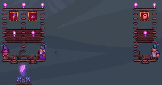 我们只要让护士和商人单独相处后购买了森林晶塔,然后让不重要的NPC在这里扎堆就完事儿啦:P