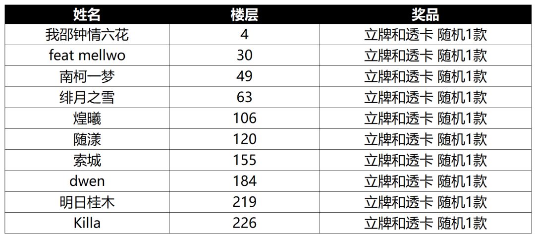 4. 实物奖励管理员会尽快给老板们发送快递,请老板们耐心等待哦~