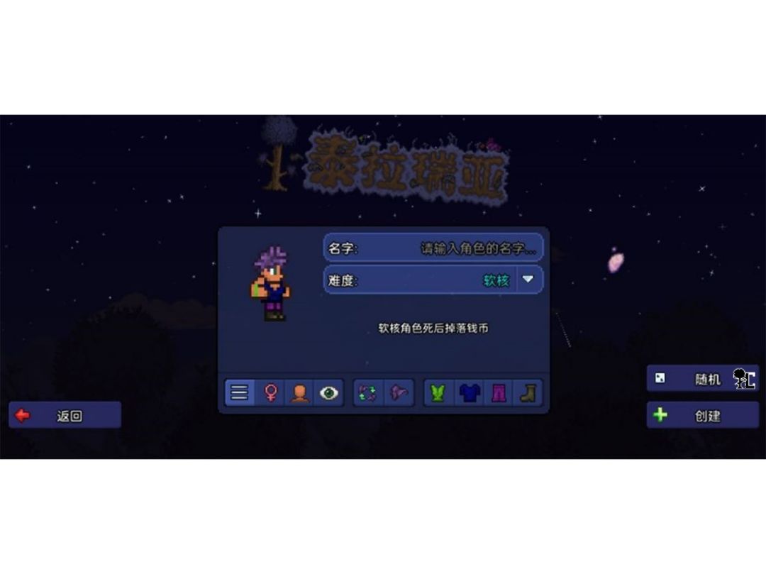 作为创建角色界面,这里可以给角色起名字、更改外形,和选择难度。