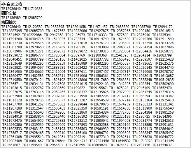 · 最终有效评论回复数为4886,故抽取240个【富可敌国礼包】、2个【四阶宝箱】、2个【神·自选宝箱】名额