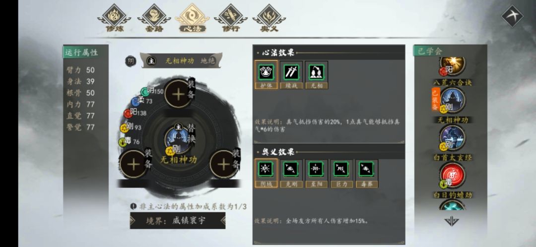 众所周知,我对于内功心法的分析还是非常有用的,其实主要是因为内功心法中自带永久有效的心法效果导致的。心法效果是固定的,不浮动不变化的一个系数指标。