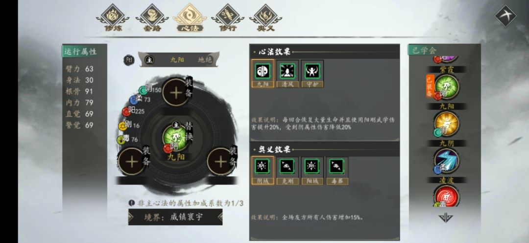 在主心法放置《九阳》