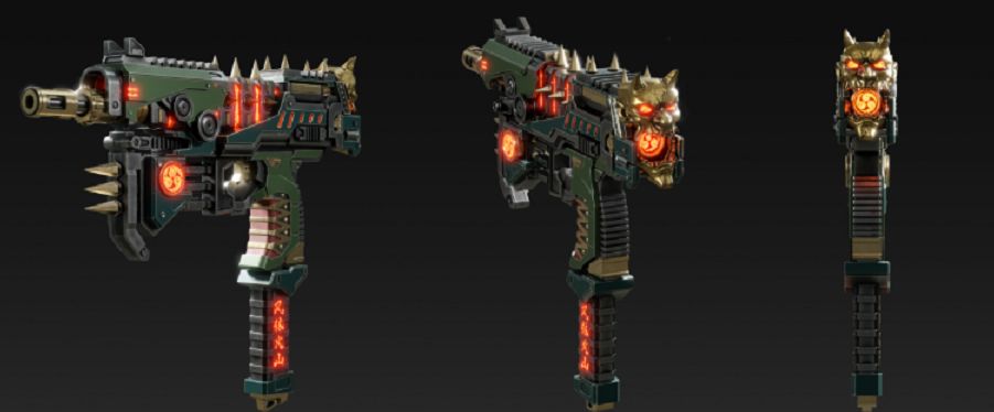 铜色的荆棘铆钉遍布枪身