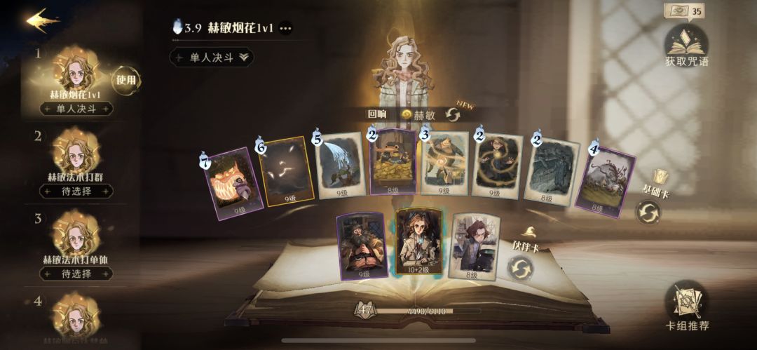 卡组如上。个人体验最难打的是高等的哈利,其次打球贝拉,所以带了丹尼尔,不然很容易被耗死,其他都有一战之力。玩赫敏烟花或者想学赫敏烟花的可以交流一下。