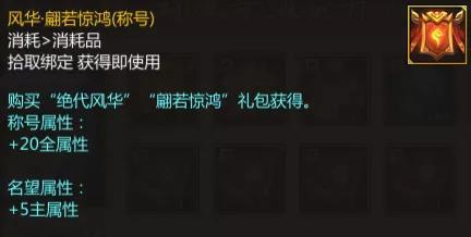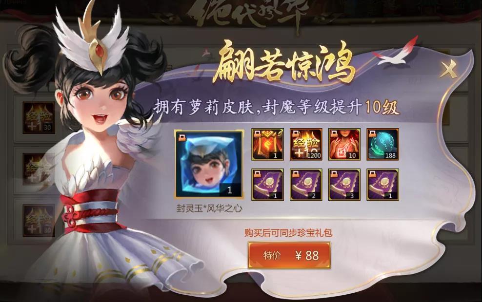 推荐内容:翩若惊鸿礼包+封魔战功2折特惠包
