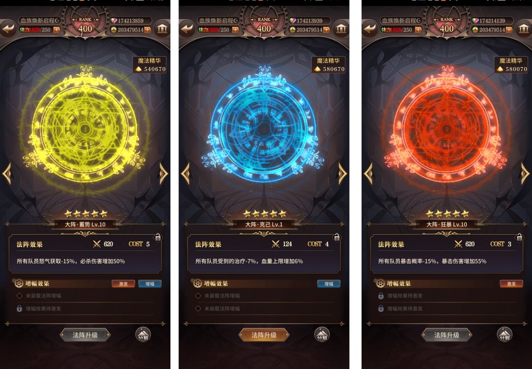 活动期间,【狂暴】、【蓄势】、【克己】三种类型法阵概率大幅提升(法阵塑能时有50%概率获得这三种法阵其中之一)