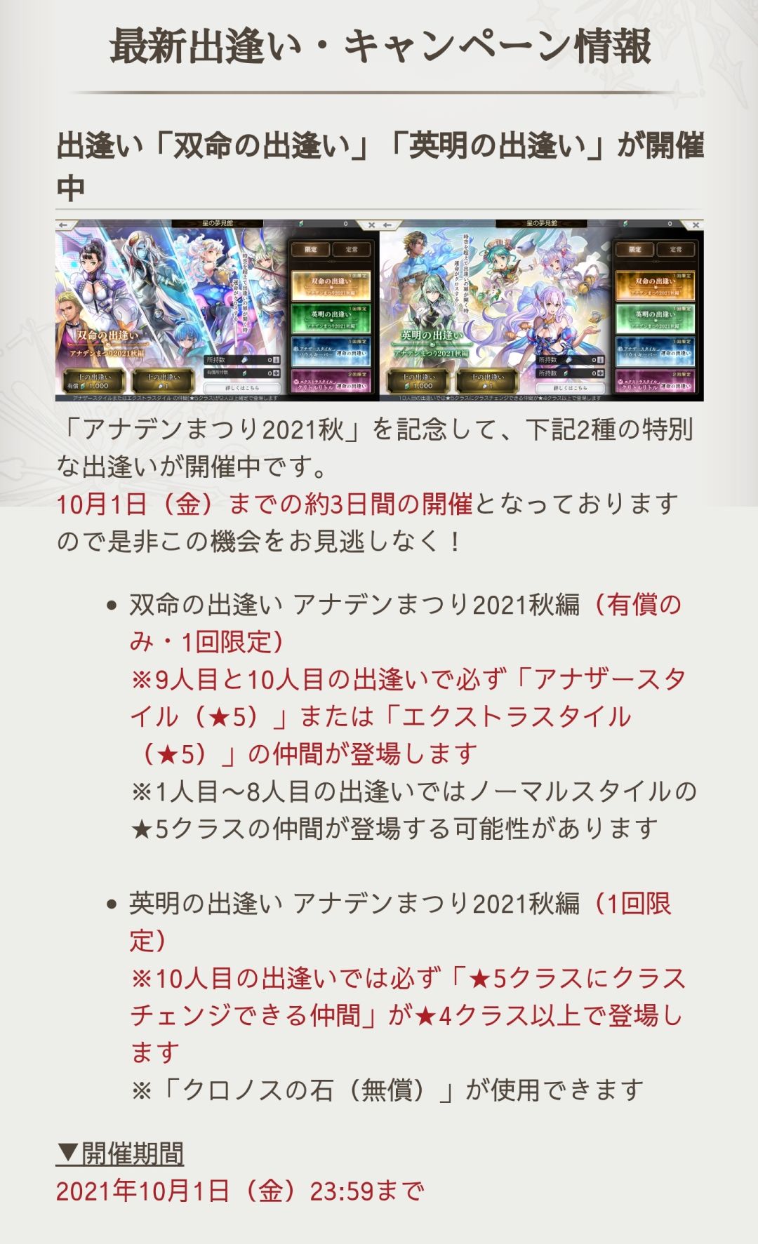 9月30日 日服2.10.50更新概况 (附直播概要)