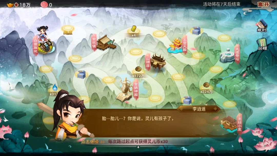 赵灵儿、林月如、李逍遥的故事将在“梦入仙剑”延续,与常规的战斗不同,梦入仙剑是通过地图探索的形式,玩家通过掷骰子一路往前来触发路过的剧情事件,同时还可获得丰厚的奖励。