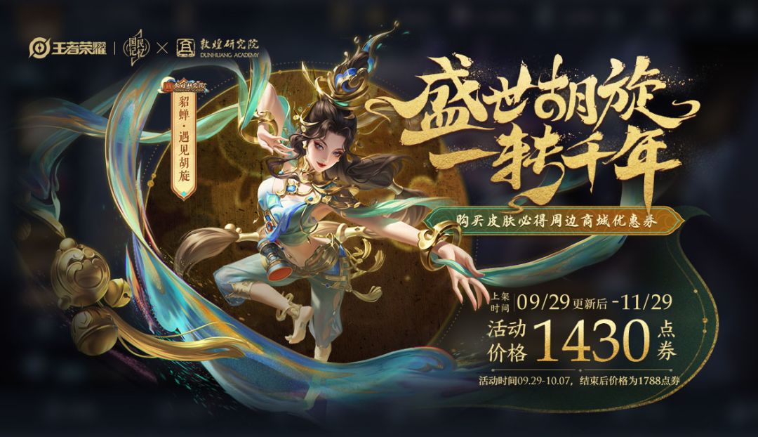 评论区说说遇见胡旋中你最喜欢的敦煌设计元素,就有机会获得【貂蝉-遇见胡旋】永久皮肤哦~