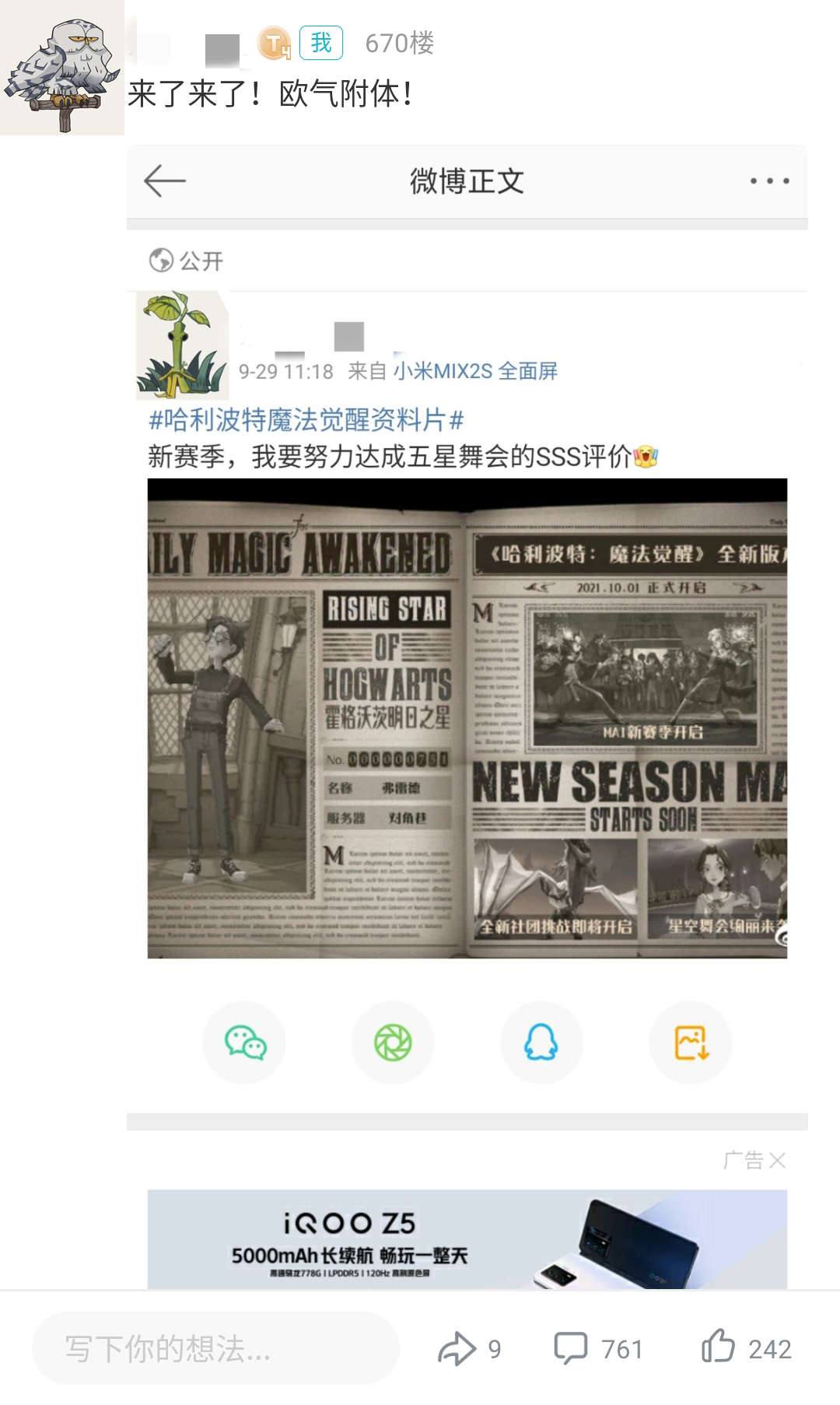 带微博话题#哈利波特魔法觉醒资料片#,晒出新赛季情报截图,发布微博动态,并将微博动态截图发至本贴评论区,即可参与抽奖!(据说带上多张图片发博的巫师中奖几率会大大提升喔!)
