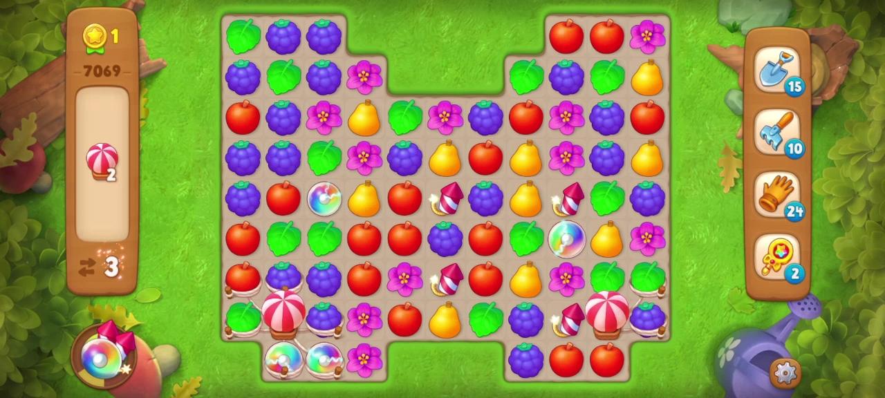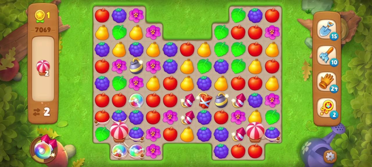 割草机:清除和割草机相同颜色的元素可以将割草机充能。
