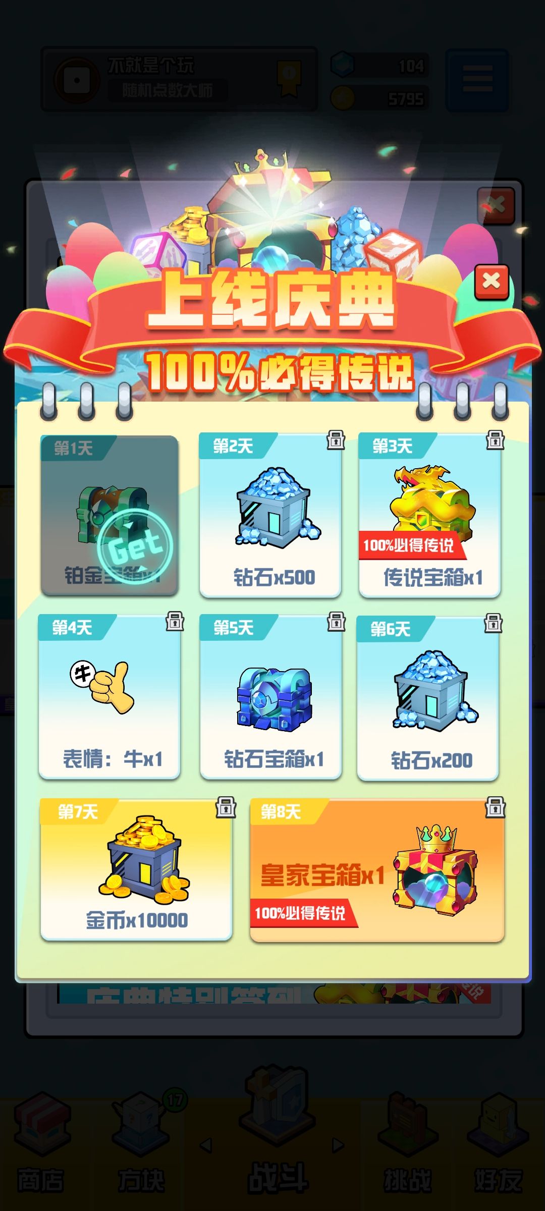 我就是喜欢这种白嫖的,什么橙卡啊,传说啊,能白嫖是最香的了,话说这游戏抽卡没有白嫖的,其他的这些铂金箱子啥的,也是有几率开出来传说的嘛?
