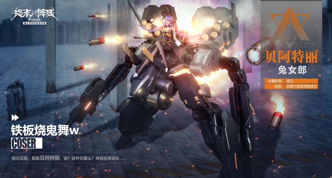 《终末阵线:伊诺贝塔》游戏官方携手知名coser铁板烧鬼舞,倾情演绎人气战姬贝阿特丽!现在,就让我们一同去领略由她塑造的训练中的“兔女郎”,是多么的又飒又可爱吧!
