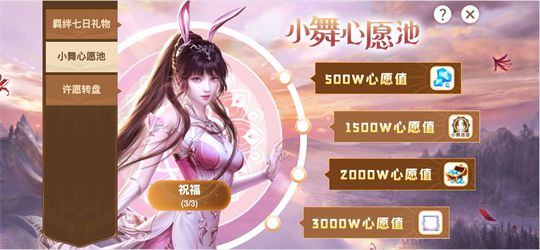 活动期间,玩家点击“祝福”按钮送上心愿祝福,根据心愿值解锁对应奖励,解锁后所有玩家皆可领取;