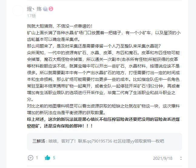 首先公布一下上次中秋节爆料中,竞猜《野外探险》中新增元素如何玩获胜的玩家及他的回答。