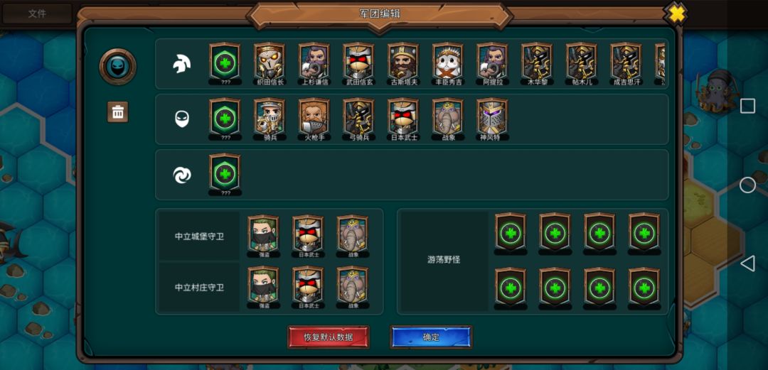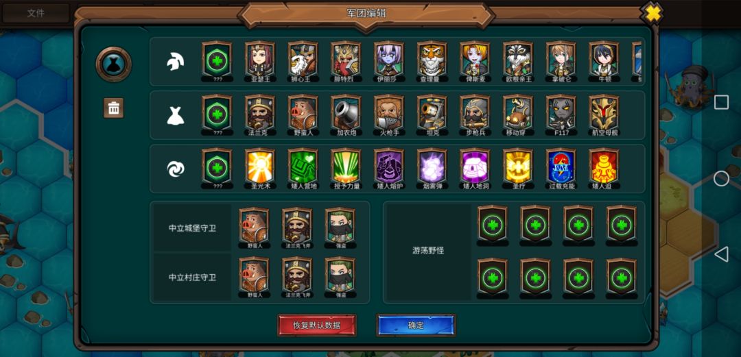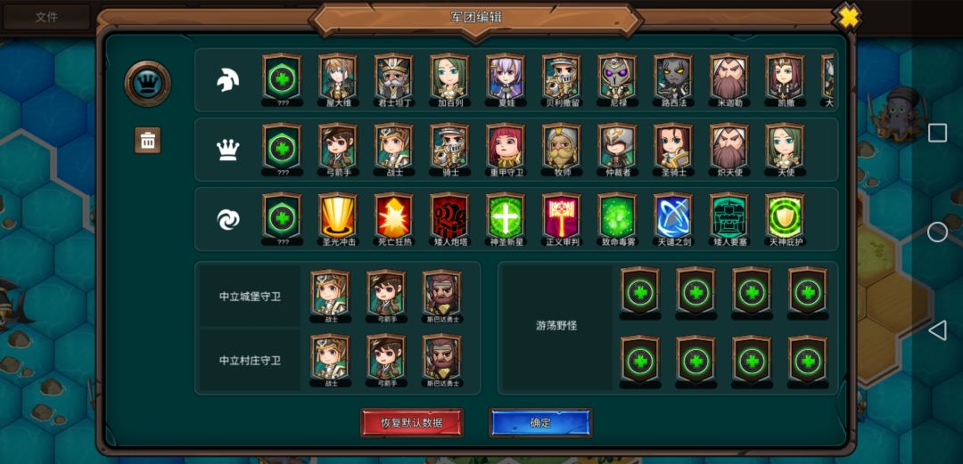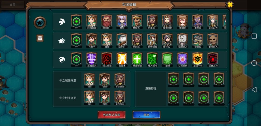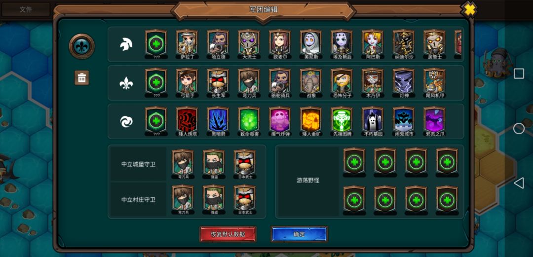 每座主城一上来的小兵往左走可以得到一个开图器,英雄装上就能开全图,这游戏跳过敌方行动有时会卡死,开了全图以后看完它们行动就不会卡了。有些英雄的技能搭配比较独特,看不懂技能的玩家可以看下英雄信息。骑兵及其他中立兵种需要在中立建筑招募,雇佣兵营地可招募东方的兵种,元素营地可招募西方兵种,龙穴可招募神话生物。中立英雄所有势力都可以招募,其中日本派系英雄数量达到三个以上会增强。(本来不同英雄也是需要达到一定宫殿等级才能招募的,但因为游戏bug一上来就全都能招)