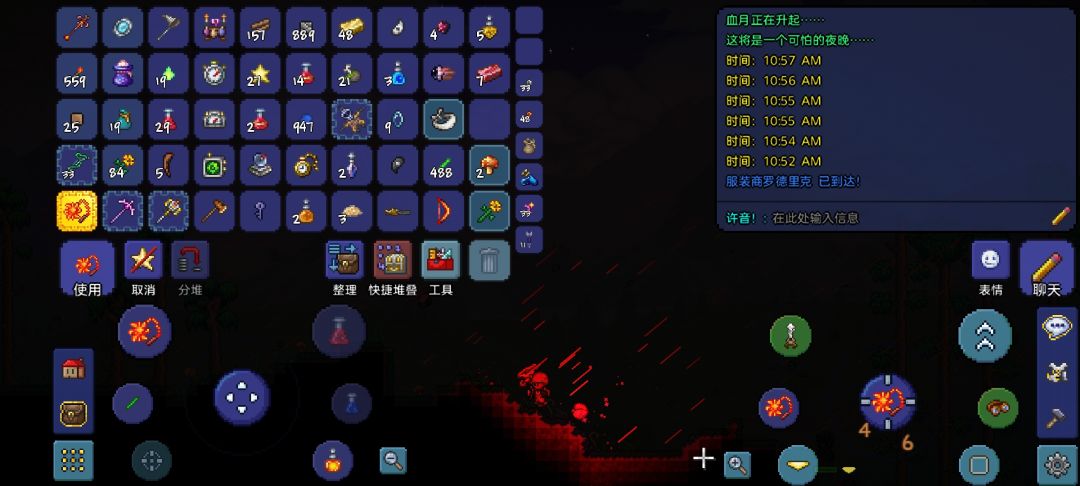 这怎么玩,血月,双子魔眼,沙尘暴,出生点左边沙漠有沙尘暴,右边腐化之地,那怪太猛了,我这还没发育起来,才肉后第二天,沙尘精,双子魔眼围殴我