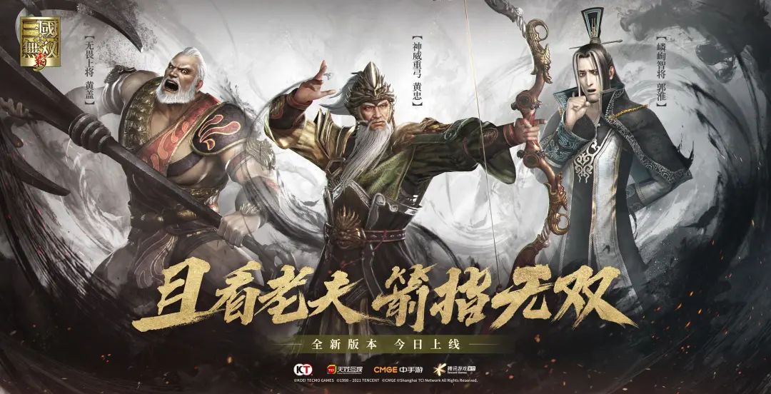 他们分别是双挽铁胎弓,射技非凡,胆气惊河北,威名镇蜀中的五虎上将黄忠,助力孙家子弟平定江东,使苦肉计在赤壁之战中勇猛果敢的江表虎臣黄盖,以及身为名门望族,却能亲自降夷拓边,破羌御蜀的魏晋名将郭淮。