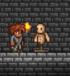 最后,我们再做上一点火把用于照明,并制作一些平台,便可以去稍微近一点的地方探险了。如果地上有太阳花或者蘑菇的话,一定记得顺手采集,这些可以为我们将来酿造药水作准备。同样的,石头也要顺手采集。