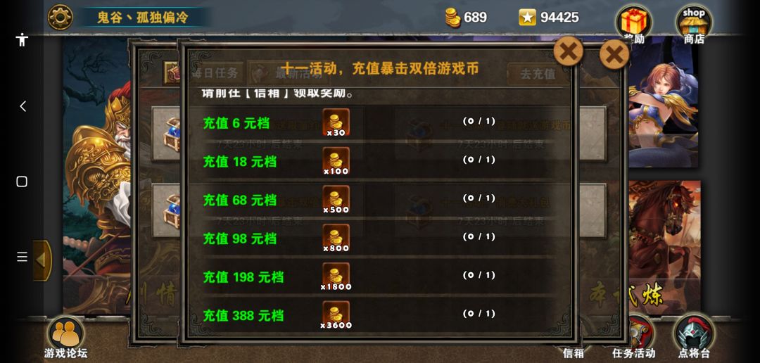 首先是这个活动最大的亮点,每个充值档位送的金币都翻倍,这样的活动自我入坑一来从来没有遇见过。以前最多给一个388翻倍,现在却全部的档位都翻倍,在下直呼牛批。
