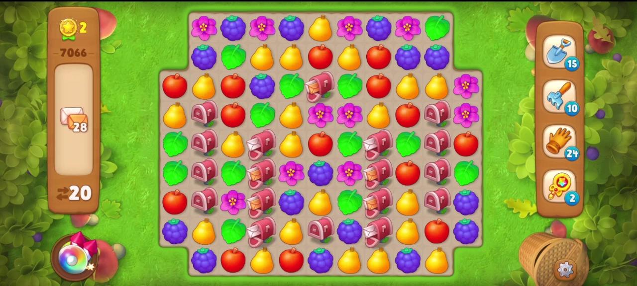 ④下方信件打开,可以匹配葡萄收集,同时炸!弹落下,等左边的三个信箱打开就可以用它收集信了!