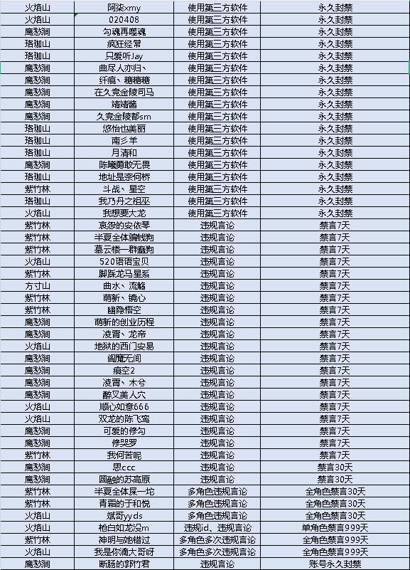 本帖将用于各位上仙举报公屏不当言论、使用第三方软件(包括但不限于除游戏安装包外的脚本、外挂、加速器、美化包等)、卡BUG等违规游戏行为,我们将对举报内容进行核实,并视情况给予禁言1天-永久禁言、封禁角色、封禁账号等惩罚。