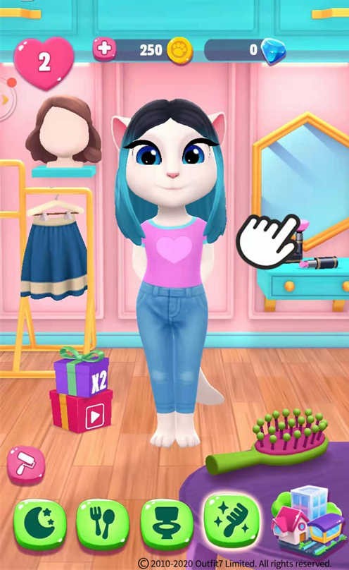 同时,虽然猫咪一直都是毛茸茸的,非常可爱,摸起来、抱起来也都超级的舒服,但是掉毛问题也是很令人头疼。特别是一到夏天,几乎家里的每个角落都会充斥着猫毛。而“云养猫”就不会有这种烦恼,可以在游戏当中给安吉拉梳毛,也可以给安吉拉换各种各样的不同的造型。