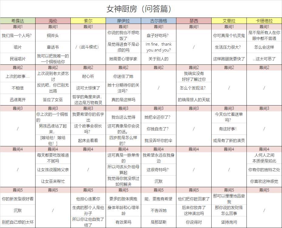 今天在咱们的交流群里有人询问女神厨房的答案,我刚好有时间,就弄了出来,给大家参考下,虽然有了答案,但是剧情内容还是很不错的,给开发组们点赞,感谢艾拉大佬帮忙修改,让答案的颜值如此之高(艾拉yyds)