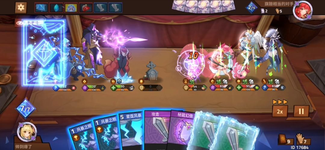 4.一个半血左右的狂战嘲讽度极高,很容易骗出对面的关键爆发技能去集火秒杀狂战,这样一来我们保护了雷法和奥术,二来快速压缩了牌库。