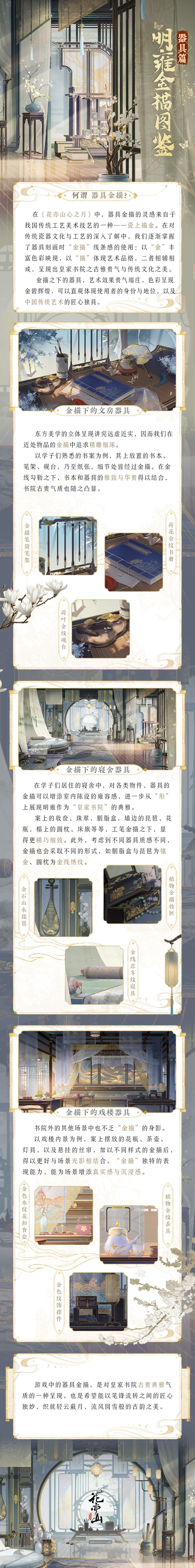 除了万景金描PV中展示的部分府城金描场景,大景世界中其实还有许多金描细节,比如学子们的文房器具、寝舍用品等等。