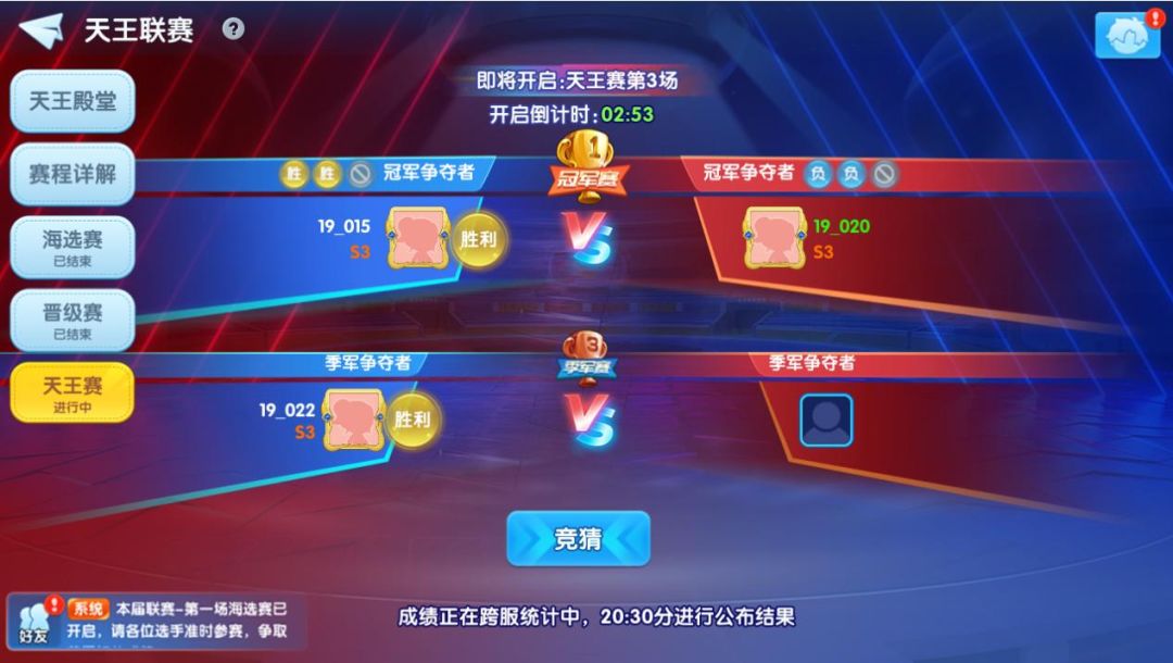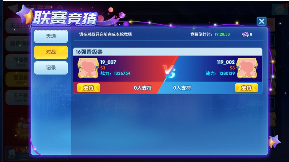 ☆在每轮每组对战开启前,可进行对战竞猜,而对战中可观看当前对战过程