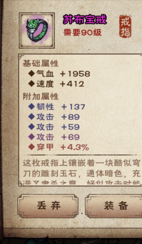 花费了两天终于看完所有装备序列了,辛玄甲的序列真的把我恶心到了,去冷月垫了15件依旧垫不出2免伤,直接放弃了垫气血算了,这个三攻戒指也是史低,讲究用用吧,出了两个3.多免伤甲还是挺不错的都打出来了,护腕没有打,序列太靠后了就不要了,总之这次更新还是有收益的